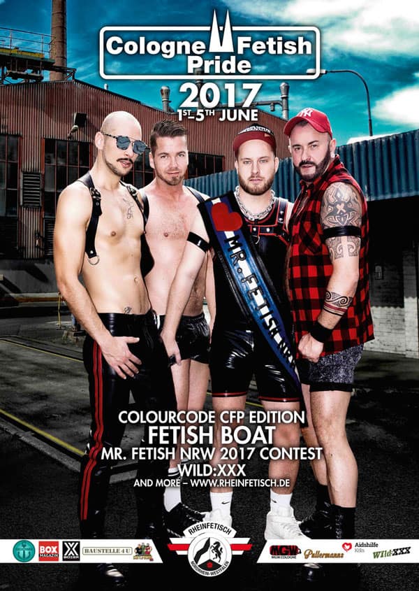 Rheinfetisch lädt ein zur Cologne Fetish Pride und der Wahl des Mr. Fetish NRW 2017. Wie jedes Jahr zu Pfingsten veranstaltet Rheinfetisch e.V. auch 2017 wieder die Cologne Fetish Pride – zum mittlerweile 12. Mal! Vom 1. bis 5. Juni sind Gäste aus nah und fern in Köln herzlich willkommen!