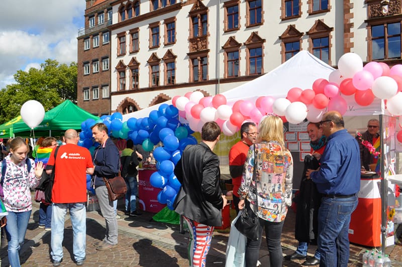 Als einer der letzten CSD feierte die Dortmunder Community den CSD auf dem Friedensplatz in bekannt familiärer Atmosphäre. Zum Glück ließ sich nach einem intensivem Morgenregen am Nachmittag die Sonne blicken.