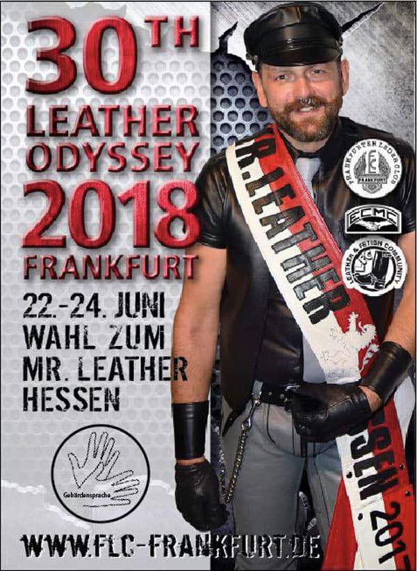Am Wochenende vom 22. bis 24. Juni 2018 veranstaltet der FLC Frankfurter Leder Club zum 30. Mal seine traditionelle LEATHER ODYSSEY®. Der FLC ist der Fetischclub im Rhein-Main-Gebiet.