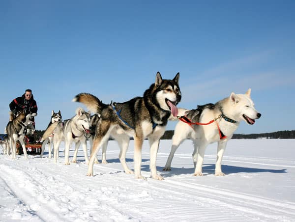 Viele spannende Aktivitäten in der atemberaubenden finnischen Winterlandschaft, wie z.B. Schneeschuh Wanderungen, Schneemobil und Husky Safari Touren.