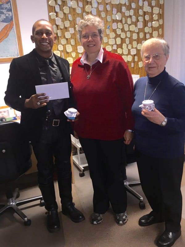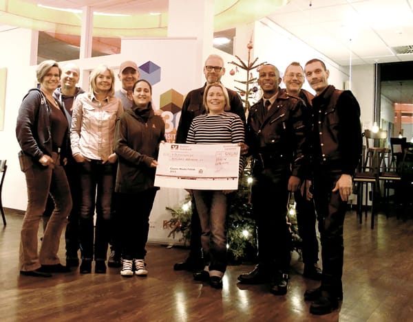 Berlin: Spendenübergabe von CLASSIC MEETS FETISH. Tyrone Rontganger, ehemaliger German Mr. Leather 2013/2014, hat Spendengelder vom weltweit ersten Fetisch-Klassikkonzert in Berlin zu Folsom 2015 überreicht. Unterstützt vom Berliner Fetischverein BLF e.V. kamen die Spenden in Höhe von insgesamt 1.000 € dem Hospiz Tauwerk e.V. und der Berliner Aidshilfe e.V. zu Gute.